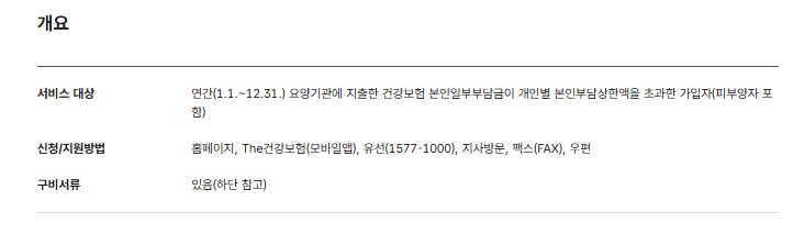 - 적용기간: 매년 1월 1일 ~ 12월 31일 진료분