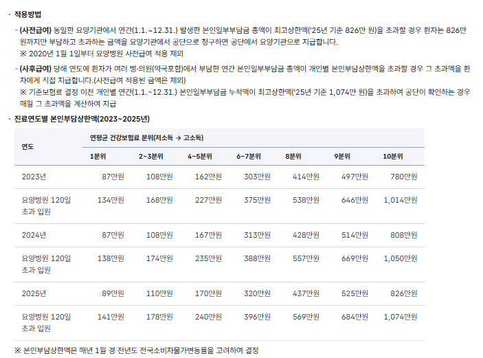 - 사후환급: 여러 병원을 이용하며 초과한 경우, 환자가 먼저 부담 후 다음 해 공단에서 환급