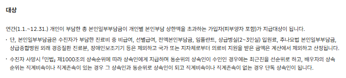 - 대상자: 소득분위별 상한액 초과 의료비 지출자