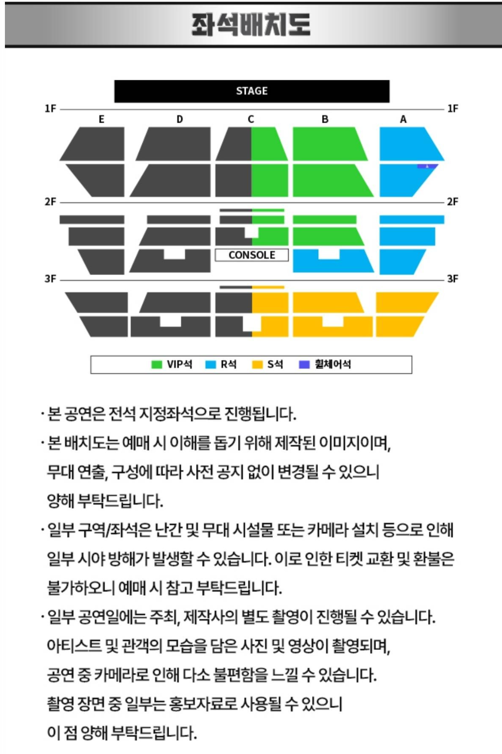 | R석 | 143,000원 | 중심부 시야 확보 가능 |